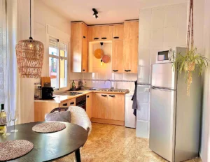 * Cocina abierta con cafetera Nespresso, hervidor de agua, vitrocerámica de 4 quemadores, horno eléctrico, microondas, nevera con freezer, tostador, exprimidor de zumos, lavadora, utensilios de cocina y vajilla